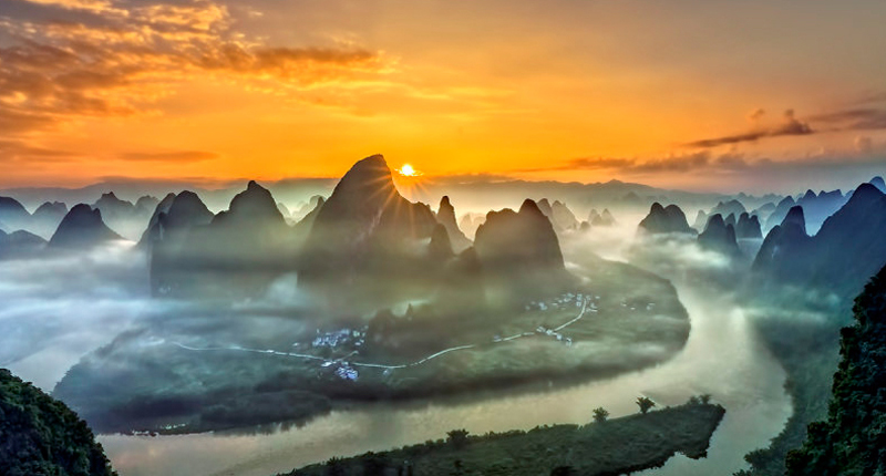 One thing is critical: rainfall plays an essential role to generate dramatic weather conditions in the Li River region. Generally, if there is a change in weather, for example, having had 2 or 3 days of rain followed by sunny days, then a dramatic sunrise or sunset will likely occur on the third or fourth sunny day after the rain.
