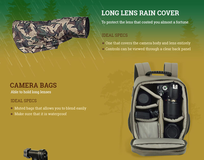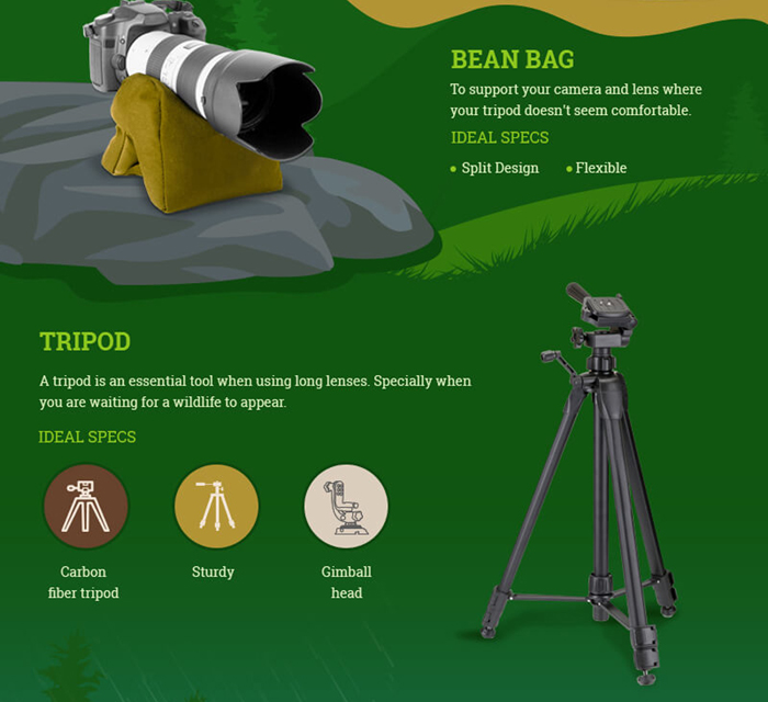 In order to guide you with the information about these equipment’s and exactly what other things, you should include in your bag pack, here we have an imaging infographic from Tusk Photo with very beautiful and interesting facts in it to help you be able to make the most, if not all. Have a look at it!