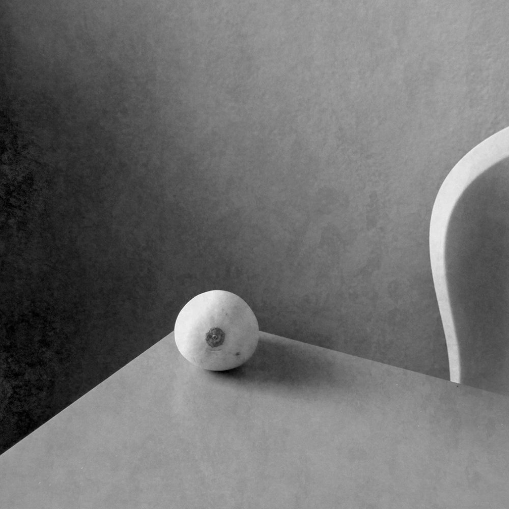 A table, part of something that could be a chair and at the corner of the table a fruit I can't identify - which, as a matter of fact, is of no importance. What is matters is the self-willed interpretation of the food still life genre.