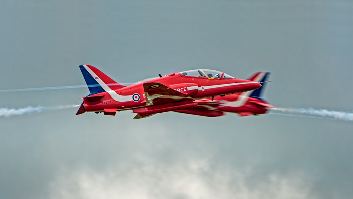 For capturing those split second parts of the routine like 2 jets crossing in opposite directions, don’t be afraid to use a continuous high-speed shutter release, panning one aircraft and starting the sequence using the ‘corner of the eye’ technique as the other approaches. But there’s still a lot of luck involved as even with 1/8s between frames, that’s a lot of aircraft movement at a closing speeds of 1000mph!