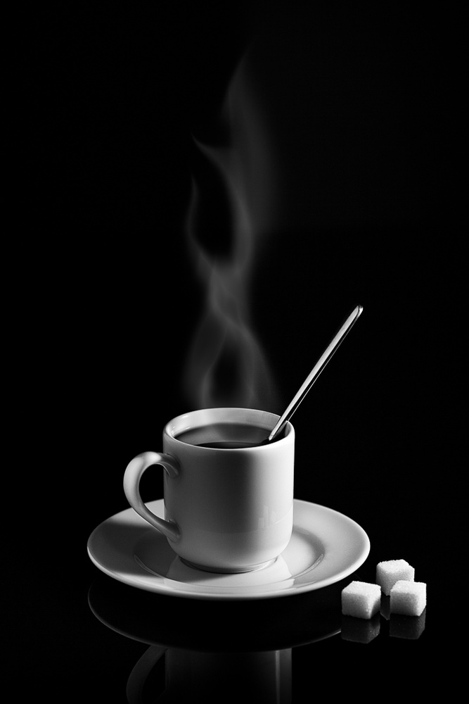 Thank you, I am glad you like it. The concept came about from a competition on a photo-sharing site for the theme of “Coffee”. The shot did not take very long to setup and shoot. Start to finish was about 90 minutes including post processing. The concept was to shoot an image that was super high contrast black and white with wisps of steam coming off the coffee within the cup.