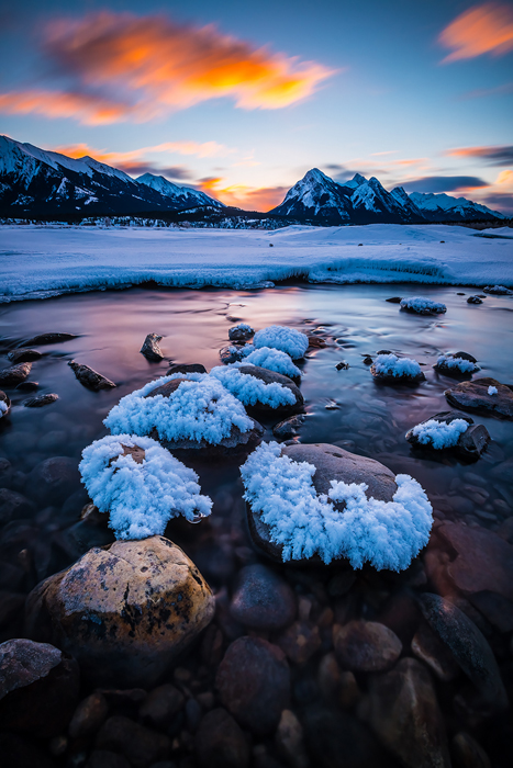 It was a very cloudy morning. I should say that I didn’t really expect anything dramatic to happen as it looked to be plain and grey for the entire morning. At sunrise, the sun suddenly broke out of a small gap over on the horizon and lit up the village and the mountain nearby. The Arctic winter light was so amazingly warm contrasting to the blue and cool hue from the massive clouds in the sky. But that was not it. As the sunrise progressed, it started to snow, beautiful snowflakes pouring down lighted up by the warm sun in front of the bluish backdrop of snowing mountains. Too bad at the time I wasn’t into timelapse or video shooting, it would have been great if I was able to capture the event in its entirety, but for sure it was a something I’d never forget.