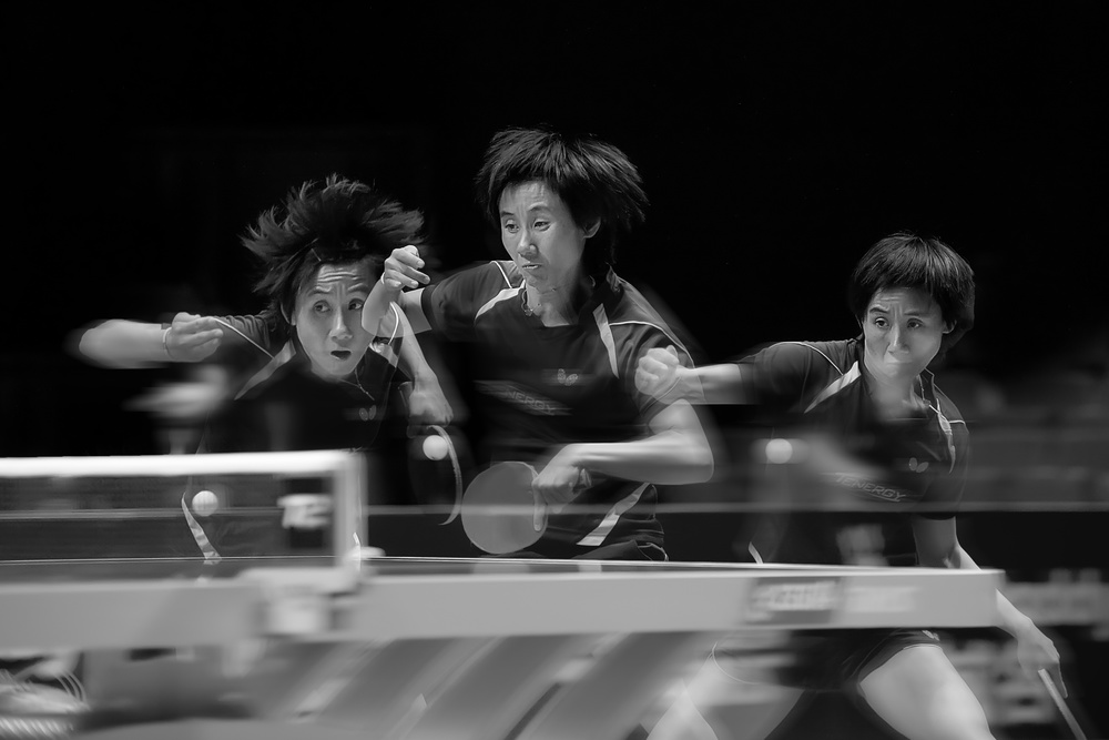 In "Offense", Rob Li did a very good job. To make his photo, Rob had to observe the athlete very well: her facial expression - so concentrated while her eyes follow that little white ball -  her movements, the feeling of speed, which were all brought together by using the on camera multiple exposure.