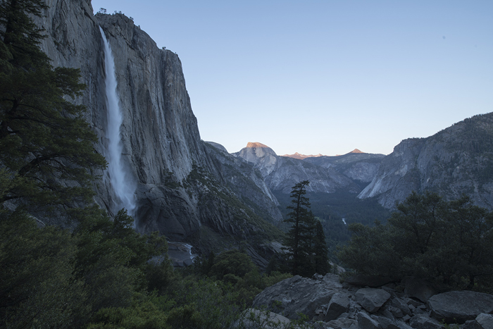 (b) Long exposure for Upper Yosemite Falls: 180 seconds with camera long exposure noise reduction on.