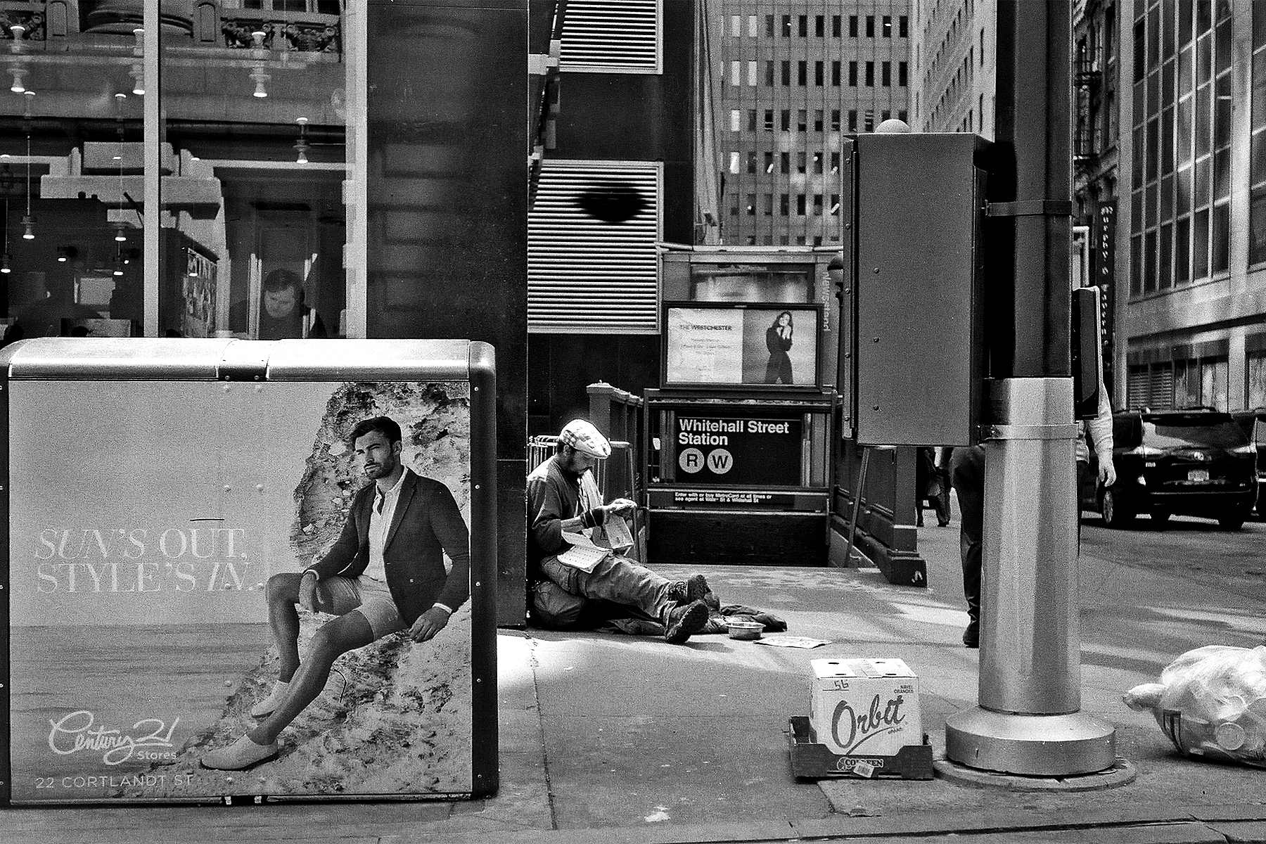 Poverty and opulence – contrasting scenes of poverty and wealth, such as a beggar in the street against a backdrop of an expensive clothing store can tell a multitude of stories