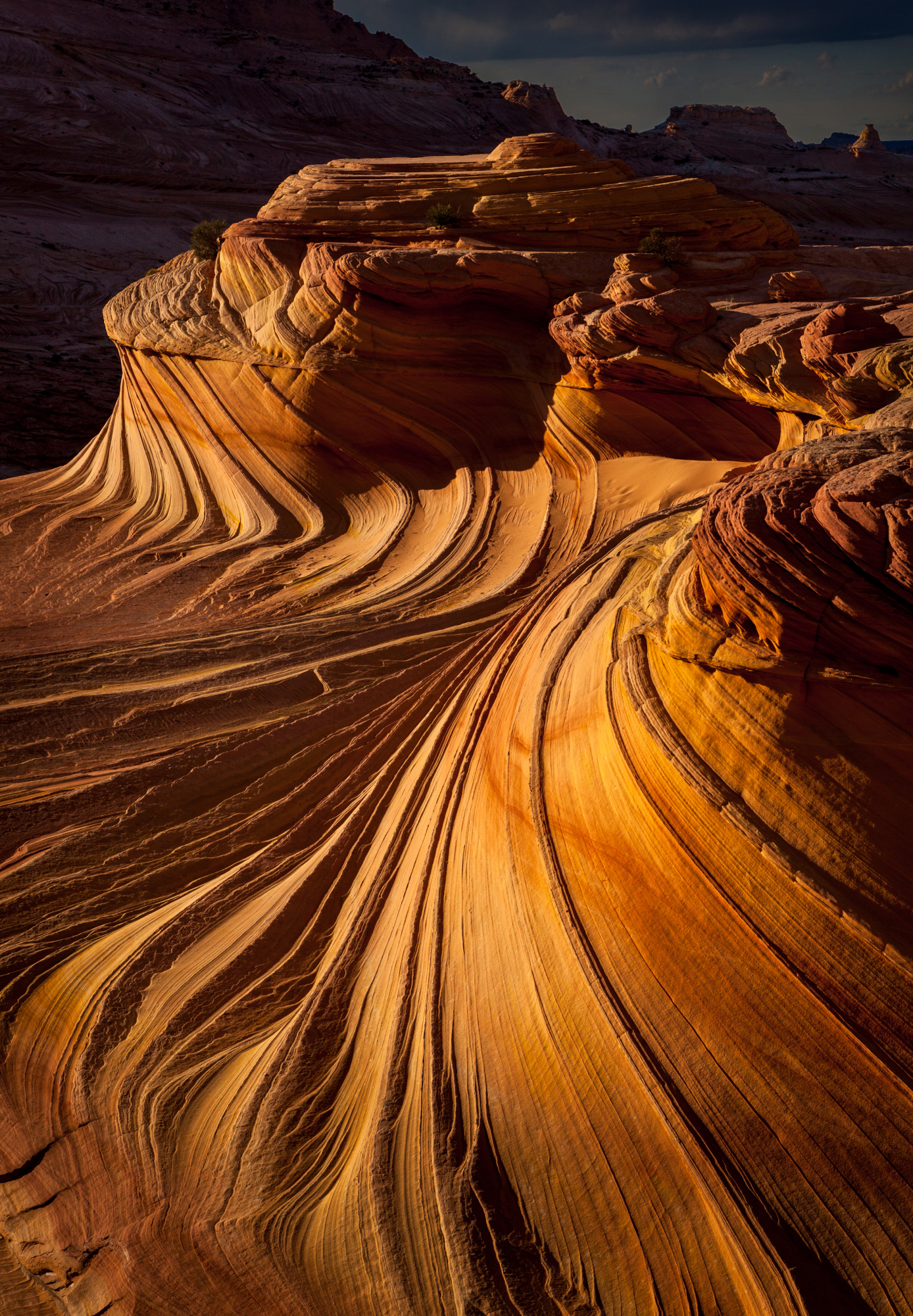 We all know this as the Wave Area or Coyote Buttes North.  We have been there 6 times hoping to win lottery.  Each time, most of the people arrived at the Wave in the mid-morning until noon and left 2 pm.  After shooting around noon, we moved around and waited for the sun to go down the mountain hill to photograph the second wave. Only two times earlier, when we were there, the sun was not blocked by the clouds.  The other time was in winter.  We didn't see no other people at the second wave and left the Wave Area as the last visitors.  By the way, we always arrived at the foot of the Wave Area before sunrise and enjoyed the vast, remote and beautiful Vermilion Cliffs Wilderness. Bring a lot of water if you go there in summertime.  For the desert trails, we always keep the last bottle of water until we see our car from a distance, no matter how thirsty we are.