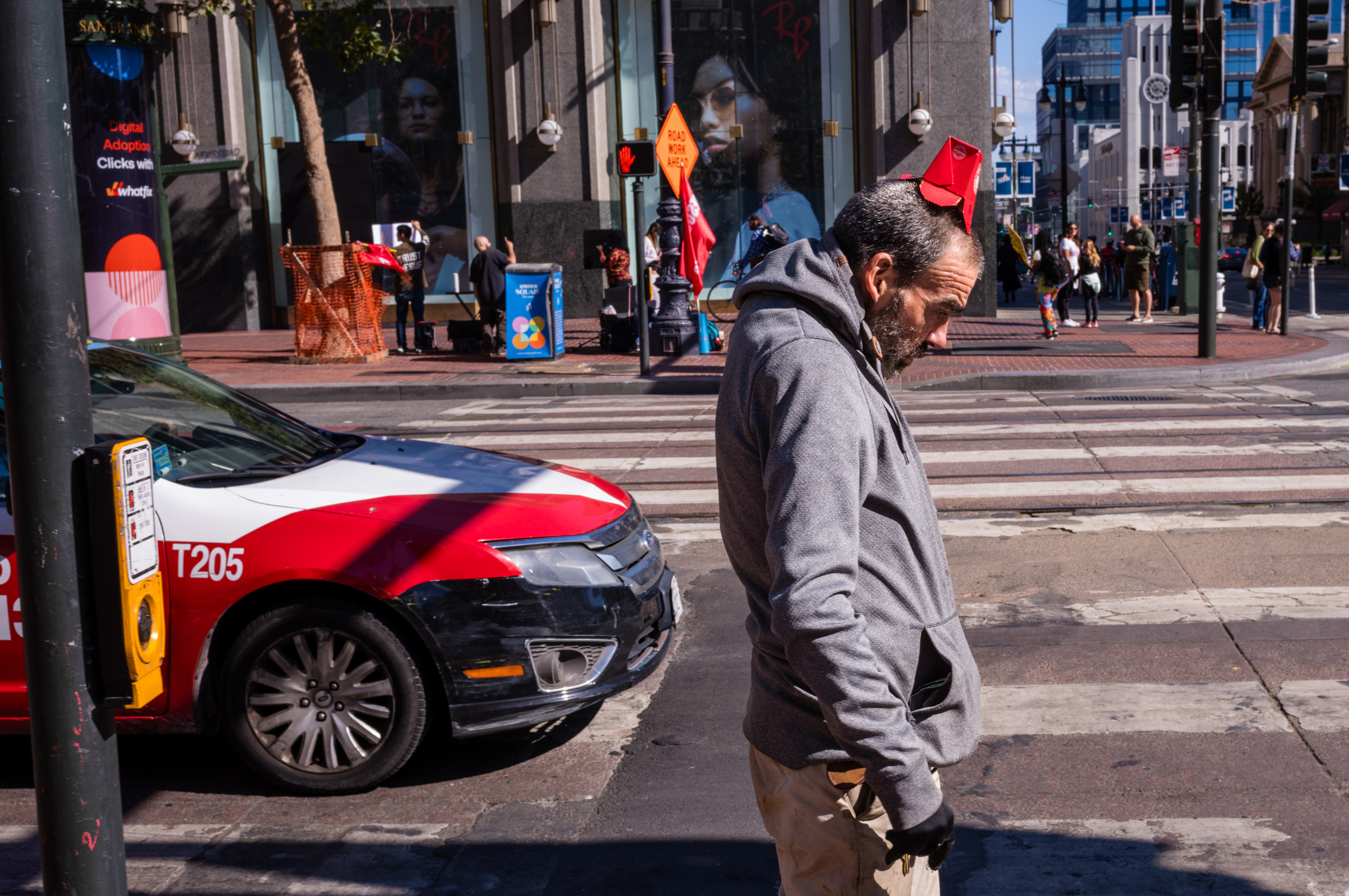 Eric quotes : When I’m not teaching yoga, walking other people’s dogs, or making dinner, I am exploring the city streets with my camera. All of the photos in this exhibition were shot in San Francisco or Los Angeles California. I tend to create quirky and humorous photos, using different angles and framing sizes, incorporating different lighting conditions, building layers, and filling up the frame. For the past 3 years I have been using a full frame digital camera and 35mm prime lens. My current camera, since January 2023, is the Leica M11.