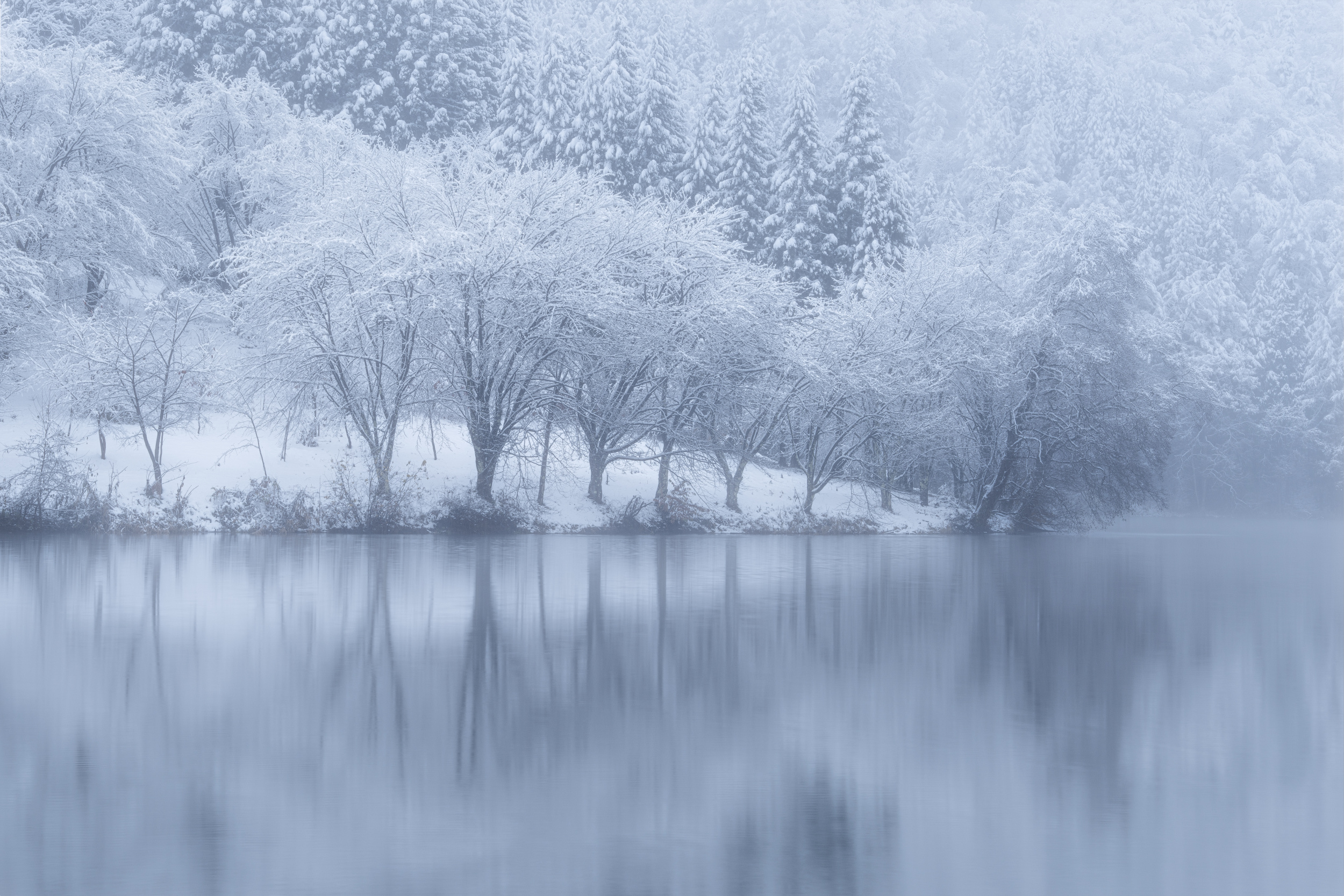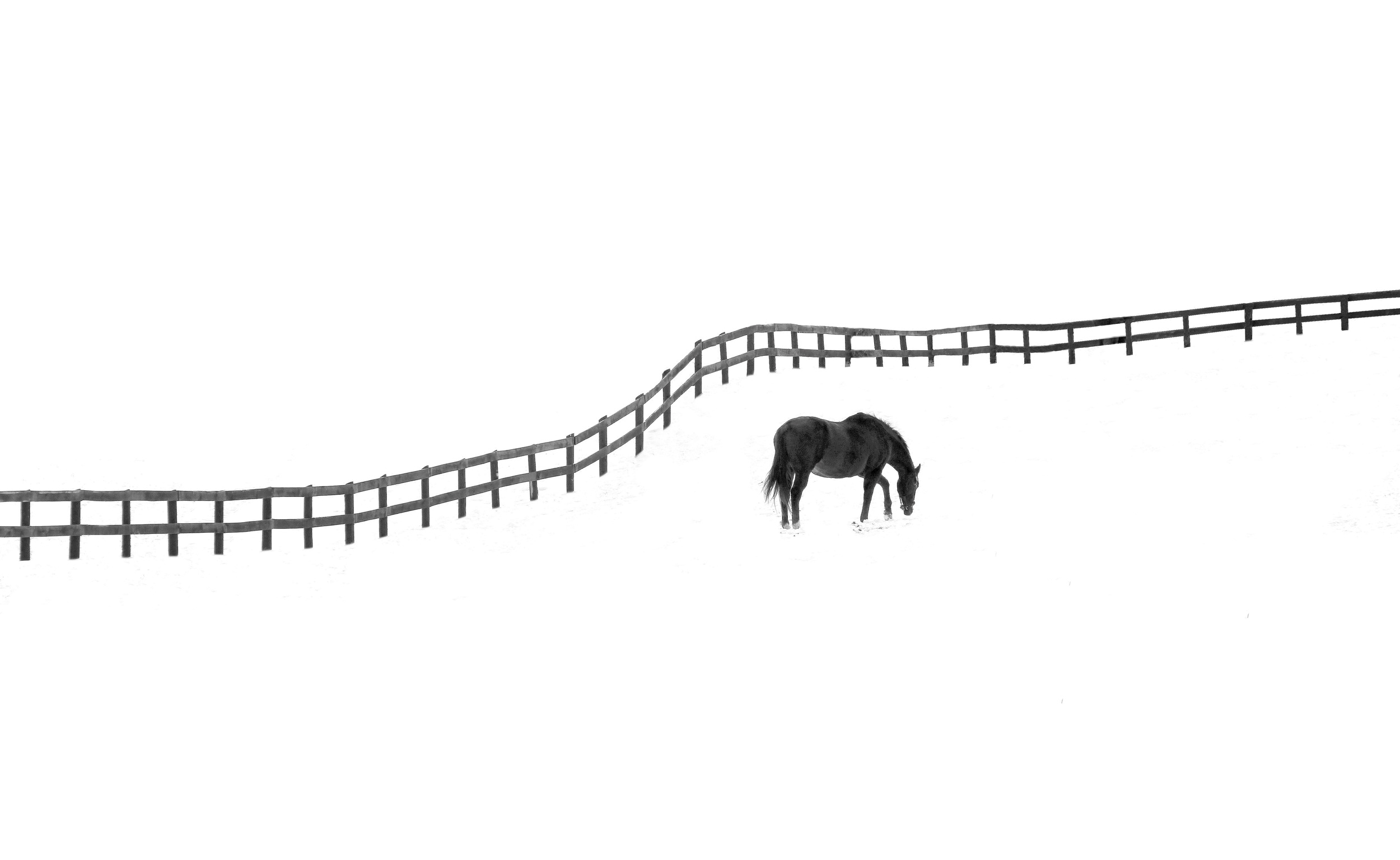 When the whole landscape is hidden under a blanket of snow, the composition looks more minimalist and interesting. Sometimes there is so much snow on the ground that the horizon is invisible, giving more freedom and the opportunity to create a composition to the photographer's taste.